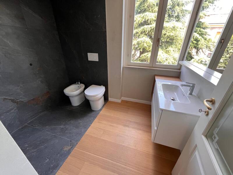 Il bagno del reparto giorno è ampio con lavanderia, quello nella camera da letto è attrezzato del solo servizio con lavandino. La cabina armadi e il ripostiglio offrono ampio spazio per riporre i propri effetti personali. La luminosità degli spazi è accentuata dai molteplici affacci, rendendo ogni angolo della casa un luogo piacevole da vivere.